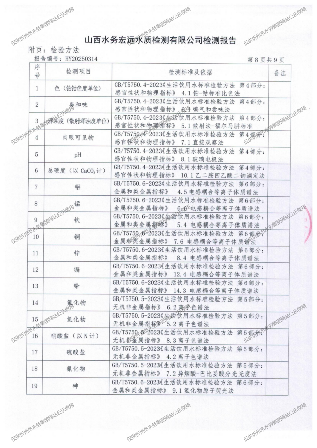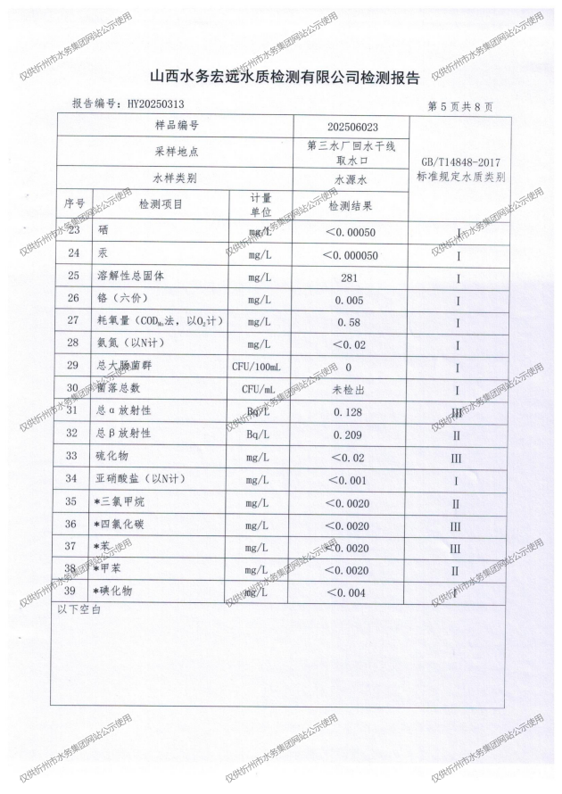 忻州城區(qū)公共供水水源水、出廠水、管網水、管網末梢水2025年6月份水質信息公示