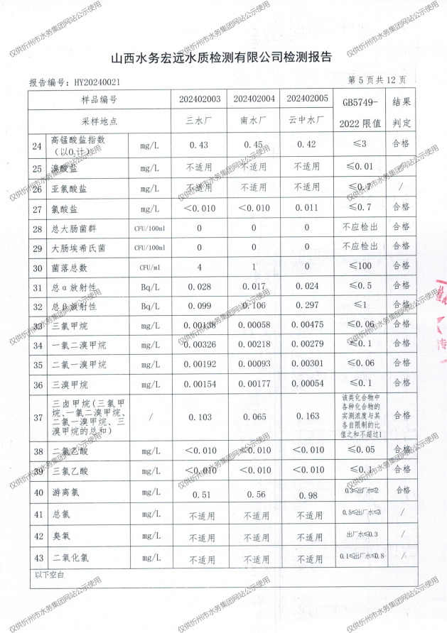 忻州城區(qū)公共供水水源水、出廠水、管網(wǎng)水、管網(wǎng)末梢水2024年2月份水質(zhì)信息公示
